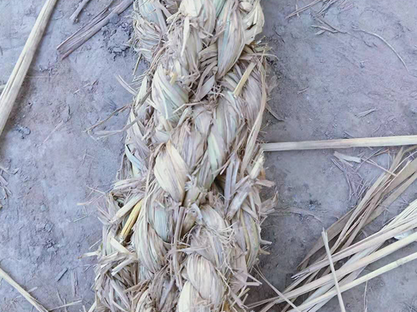• 青年利用秸稈編制草繩 用于捆扎苗木保暖過冬